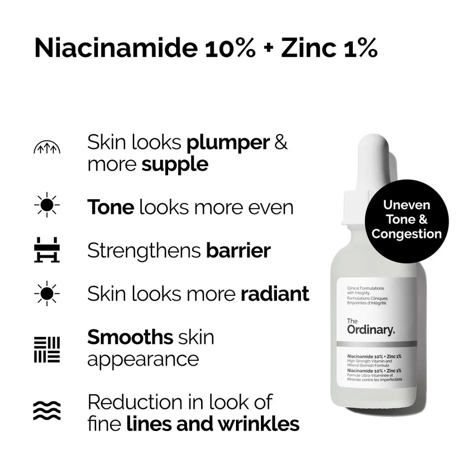 - اتبع ذلك بسيروم Niacinamide + Zinc لتنظيم الدهون ودعم توازن البشرة.